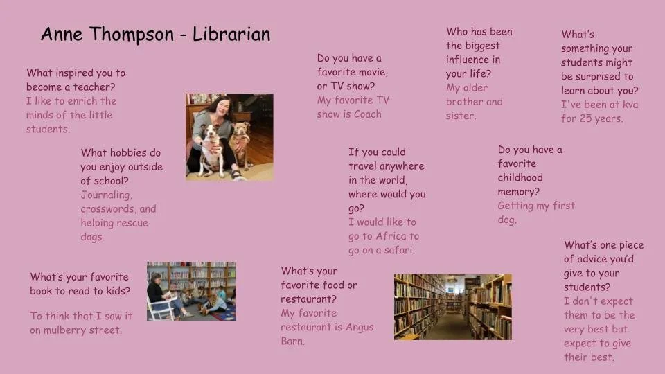 Anne Thompson Apr 21 Written By KVA Spartans Thank you, Anne Thompson, for making KVA a special place for our students! KVA Spartans